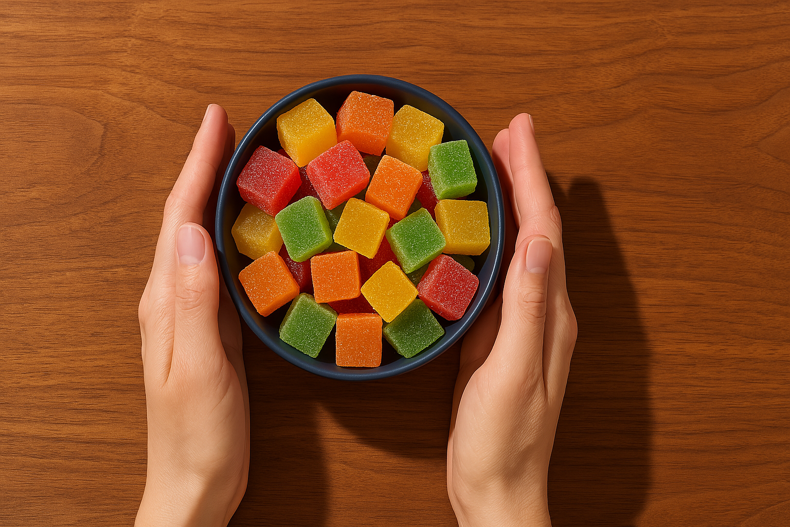 • Start Small — Begin with 1/4 to 1/2 of a gummy to gauge your tolerance.